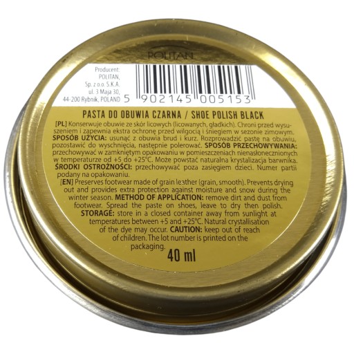 Tradycyjna pasta do obuwia, czarna, 40 ml