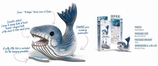 Eugy zaprojektowane w Nowej Zelandii są wykonane z przyjaznego dla środowiska kartonu pochodzącego z recyklingu i farby na bazie ryżu. Zestaw zawiera ponumerowane elementy układanki z nałożonym klejem, oczy oraz instrukcję do zbudowania ryby. Zbierz całą serię zwierząt, ptaków, dinozaurów i wiele innych. Dla dzieci w wieku 6 lat+.