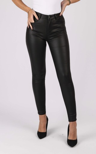 Nasz najnowszy HIT! Niezwykle wygodne, woskowane spodnie modelujące ze średnim stanem są elastyczne i zarazem pięknie podkreślają Twoje kobiece kształty. Stworzone z eko skóry z myślą o najbardziej wymagających..