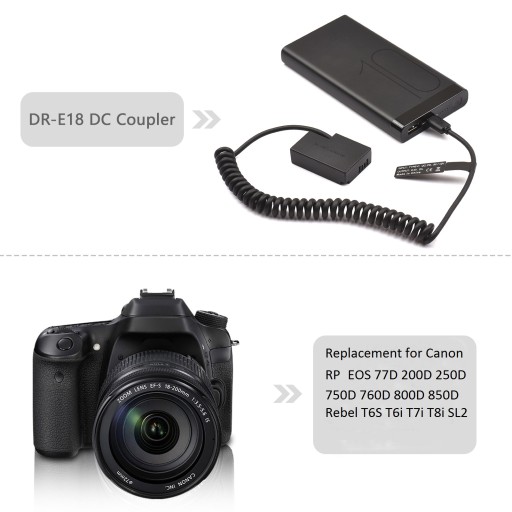 Kompatybilność: zamiennik dla Canon RP EOS 77D 200D 250D 750D 760D 800D 850D Rebel T6S T6i T7i T8i SL2 (nie jest kompatybilny z M3 M5 M6)