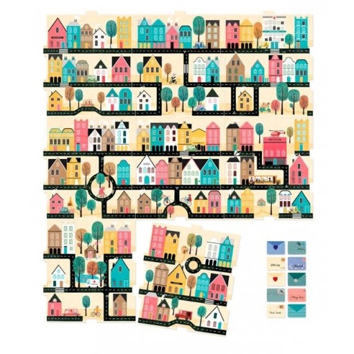 Zabawa jest dla 2 do 6 osób. Ułóż z puzzli miasto, w dowolnej konfiguracji. Poszczególne elementy bez problemu łączą się ze sobą z różnych stron. To też oznacza, że za każdym razem ułożenie miasta może być zupełnie inne od poprzedniej wersji.