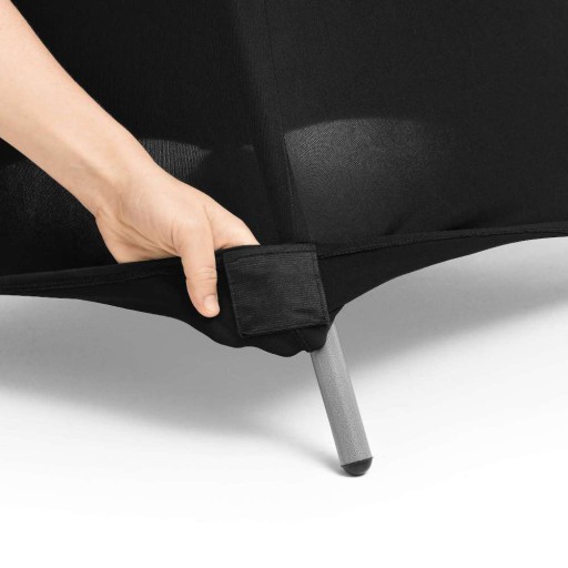 Pokrowiec wykonany z elastycznego materiału (95% poliester 5% elastan). Nie wymaga prasowania. Znajdzie zastosowanie zarówno podczas imprez plenerowych jak i w salach bankietowych, lokalach gastronomicznych czy hotelach.