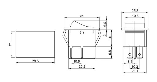 Wyłącznik kołyskowy włącz-wyłącz, świecący, 2-polowy.