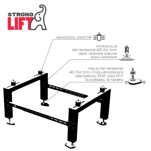 RAZEM 8 wibroizolatorów! Tylko StrongLIFT500X gwarantuje spokojną pracę urządzenia.