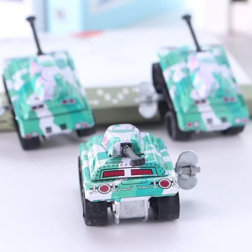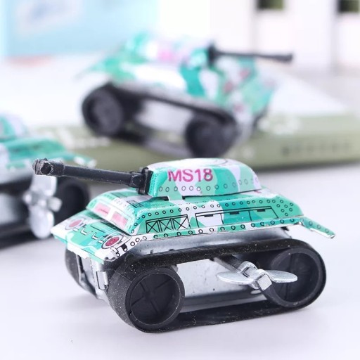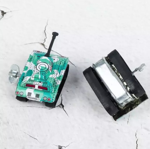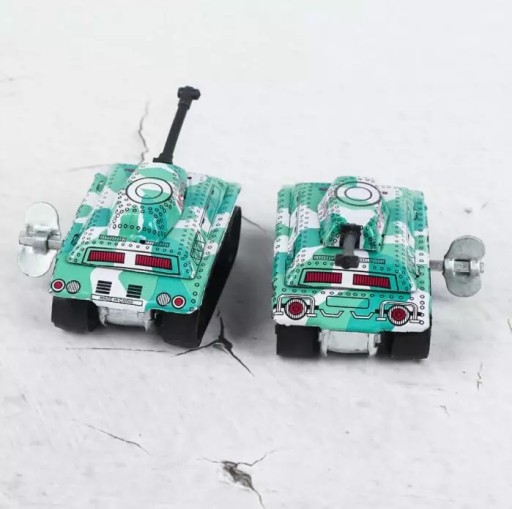 - Czołg posiada nakręcany mechanizm dzięki któremu pojazd porusza się do przodu i rusza lufą.