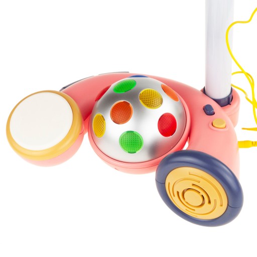Mikrofon dla dzieci z regulowanym stojakiem dla małych gwiazd posiada 4 rodzaje dźwięków perkusyjnych,12 różnych rytmów tanecznych do wyboru, migające światła kuli dyskotekowej. Maszyna do karaoke łączy się z odtwarzaczami MP3 lub urządzeniami mobilnymi za pomocą kabla audio (w zestawie), dzięki czemu dzieci mogą śpiewać lub słuchać ulubionych piosenek. Zapewnij o wiele więcej zabawy swoim dzieciom.