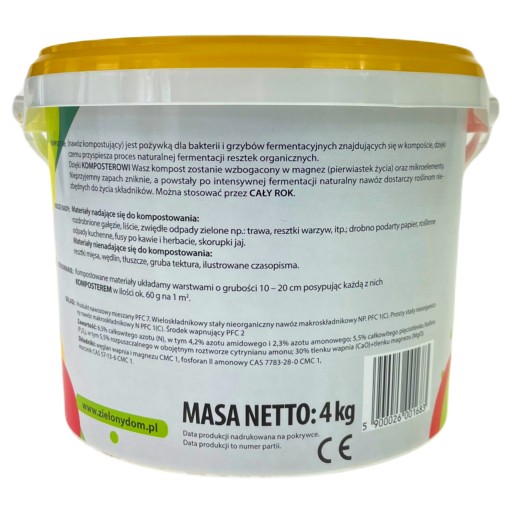 Komposter 4KG Zielony Dom to pokarm dla bakterii i grzybów fermentujących, pomaga w tworzeniu własnego nawozu organicznego z resztek kuchennych i ogrodowych.