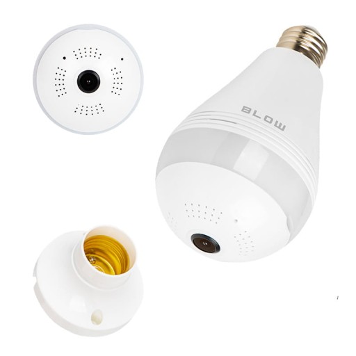 Bezprzewodowa kamera H-823, polskiej marki BLOW została wbudowana w funkcjonalną żarówkę LED z gwintem E27 do montażu w adapterze dołączonym do zestawu lub jakiejkolwiek lampie na żarówki z gwintem E27. Kamera wyposażona jest w szerokokątny obiektyw typu "fish eye" o rozdzielczości do 3 Megapixeli oraz obiektywem 1,35 mm.
