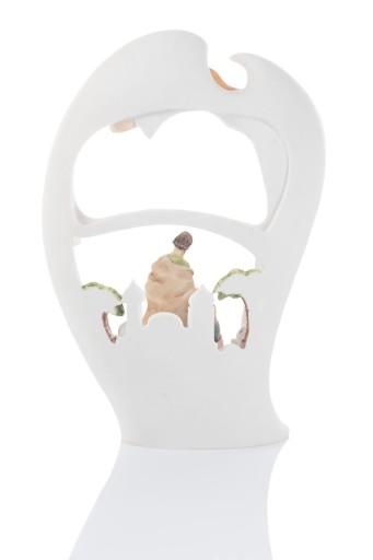Figura w odcieniach beżu i bieli, oprószona złotym brokatem.