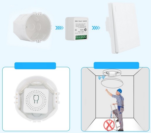 Moduł współpracuje z tradycyjnymi włącznikami (bi-stabilnymi), nie trzeba wymieniać na chwilowe (monostabilne) - nawet po manualnym włączeniu lub wyłączeniu światła użytkownik na aplikacji widzi czy światło zostało zapalone czy zgaszone.