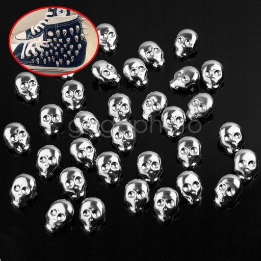 30sztuk srebrne czaszka nity ćwieki dżety