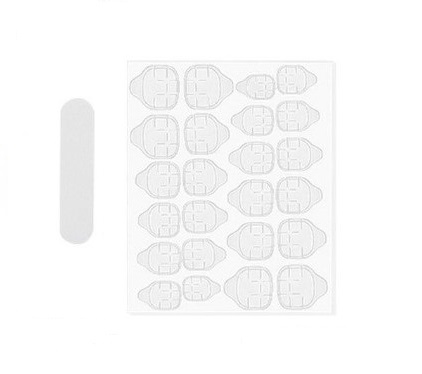 - 24 żelowe plastry w różnych rozmiarach do przyklejania tipsów.