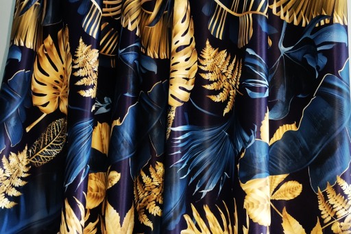 ТКАНЬ ДЛЯ ШТОР ЛИСТ ТЕМНО-СИНИЙ ЗОЛОТОЙ STORA 280 MIRACLE