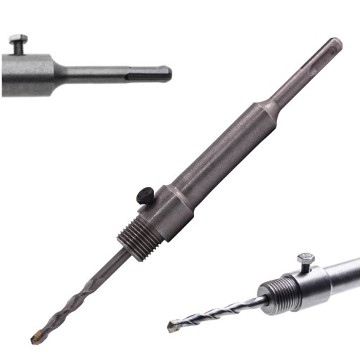 Adapter do otwornicz gwintem zewnętrznym M22 i wiertłem, umożliwiającym precyzyjne, punktowe nawiercanie.Uchwyt SDS Plus przystosowany jest do mocowania w młotowiertarkach i młotach udarowych. Pionowe nacięcia umożliwiają szybkie zamocowanie i demontaż narzędzia.