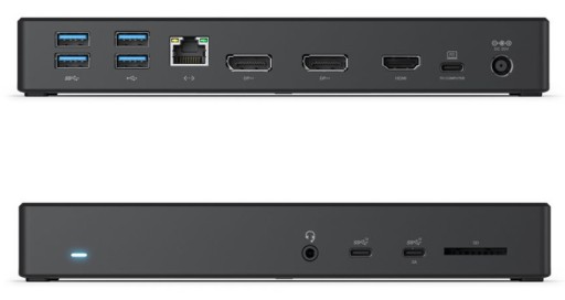 Stacja dokująca ładuje laptopa z mocą do 100W podczas użytkowania. Pozwala to na idealne rozwiązanie z jednym kablem do jednoczesnego dodawania wielu wyświetlaczy, akcesoriów USB, gigabitowej sieci Ethernet, słuchawek/mikrofonu i ładowania laptopa.