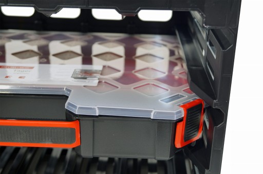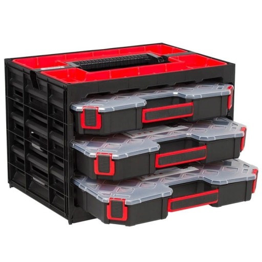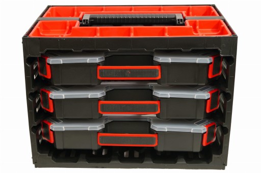 Wygodna rączka zastosowana pokryta gumą sprawia, że jest to idealny organizer dla montera.