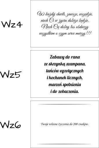 W przypadku wyboru własnych życzeń prosimy zwrócić uwagę na ich długość ze względu na ograniczone pole graweru.