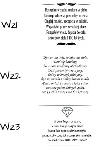 Do wyboru jeden z 5 wierszyków urodzinowych lub Twoje własne życzenia!