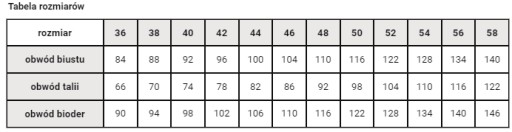 - rozmiary od 36 do 54