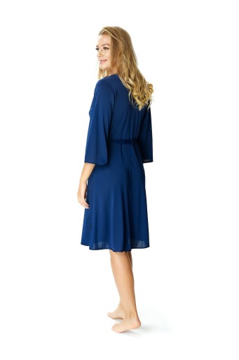 Peniuar Passion ma długość do kolan i rękawy 3/4, które są bardzo praktyczne i wygodne. Szlafrok zapinany jest na guziczek oraz przewiązywany w pasie. Idealnie sprawdzi się na wakacyjny wyjazd lub pobyt w szpitalu.