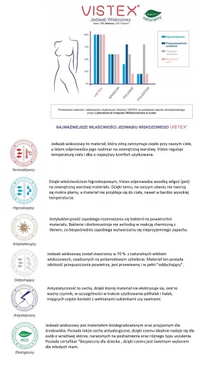 Jedwab wiskozowy wykazuje właściwości antyalergiczne i antybakteryjne, dlatego doskonale sprawdzi się dla osób o wrażliwej i delikatnej skórze. Ten materiał jest delikatny i miękki, nie podrażnia skóry.