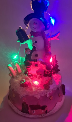 Scenka świąteczna z Bałwankiem, dziećmi, brokatem, oświetleniem LED X 5.