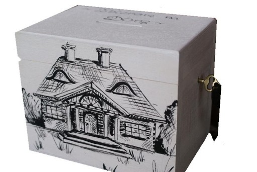 Деревянная копилка с ключиком, которую собираю на праздники.