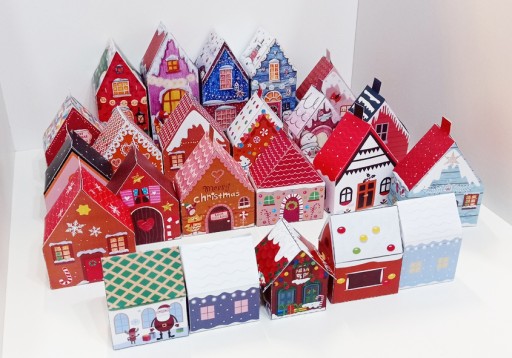 Urocze pudełka na domki do wypełnienia - świątecznie kolorowa wioska - ponadczasowy i dlatego również w ciągu najbliższych kilku lat nadal w pełni modny. Każdy domek jest inny, niepowtarzalny.