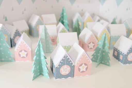 Адвент-календарь домик Рождественская деревня своими руками из бумаги №10