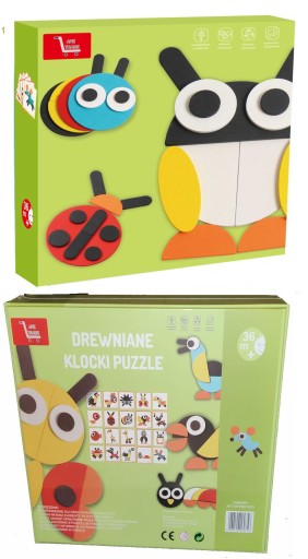 DREWNIANE KLOCKI UKŁADANKA PUZZLE MONTESSORI