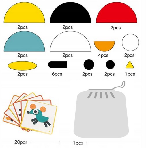 DREWNIANE KLOCKI UKŁADANKA PUZZLE+ PORĘCZNY WORECZEK DO PRZECHOWYWANIA KLOCKÓW + KARTY Z WZORAMI
