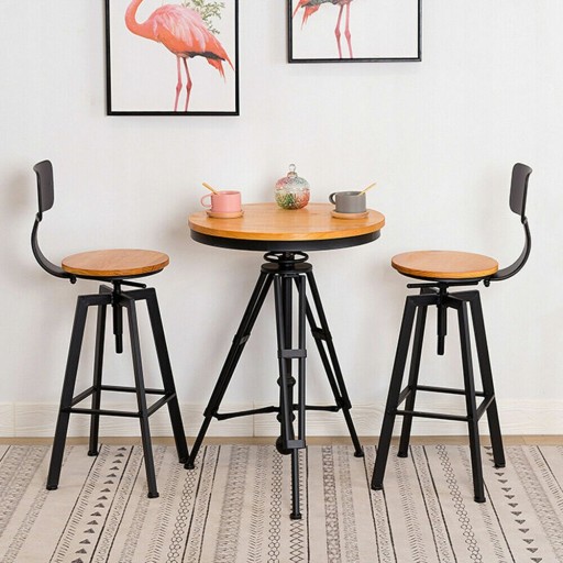 2-częściowy drewniany stołek barowy Industry Retro stołek barowy drewniany bMetal oparcie krzesło 64-84cm