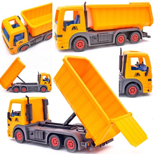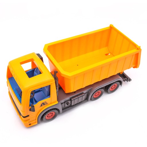 Duża wywrotka idealnie nadająca się do piaskownicy lub do zabawy w domu. Produkt posiada napęd. Zabawki z tej serii produkowane są z wysokiej jakości materiałów o dużej wytrzymałości mechanicznej. Ich zaletą są piękne, żywe kolory odporne na blaknięcie. Wywrotka idealnie sprawdzi się w piaskownicy, na plaży, na placu zabaw oraz w domu. Zabawka może służyć jako jeździk lub jako wywrotka dzięki czemu zabawa jest jeszcze przyjemniejsza.
