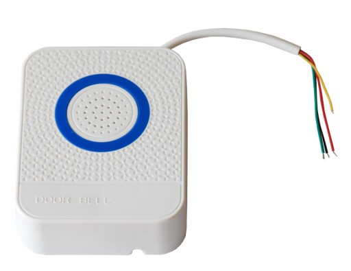 Uniwersalny cyfrowy, dzwonek do drzwi, przewodowy, zasilany napięciem 12V. Możliwe wyzwalanie w sposób tradycyjny poprzez zwarcie dwóch przewodów np. we włączniku lub też zwarcie przewodu do masy.