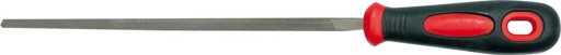 Pilnik o profilu trójkątnym, zbieżny, dwa razy cięty z dwukomponentową rękojeścią z tworzywa.