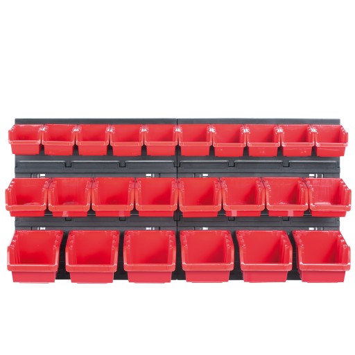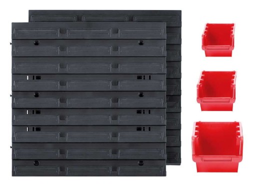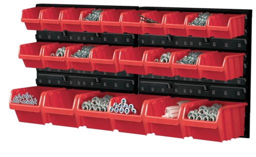 Niezwykle praktyczny zestaw, wyposażony w pojemniki na elementy drobnicowe w 3 rozmiarach pozwoli zachować przejrzystość i ład w akcesoriach narzędziowych i magazynowych. Zestaw posiada otwory montażowe, zapewniając szybki i łatwy montaż na ścianie.