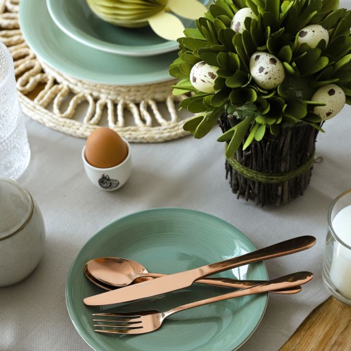 Zestaw sztućców ABELE wykonanych z wysokiej jakości stali nierdzewnej to odzwierciedlenie nowoczesnego designu. Lekkie i poręczne, stworzą wyjątkową oprawę dla Twojego stołu, zarówno na co dzień, jak i na specjalne okazje. Zaprojektowano je dla najbardziej wymagających. Dzięki solidnemu wykonaniu, posłużą przez długie lata. Wielość kolorów i nowoczesny design pozwolą na stworzenie niespotykanej aranżacji stołu, a każdy z gości na długo zapamięta spotkanie w gronie rodziny i przyjaciół. Piękne opakowanie sprawia, że komplet doskonale sprawdzi się również jako prezent. Zalecane mycie ręczne. Mycie sztućców w zmywarce może spowodować wyblaknięcie lub starcie koloru.