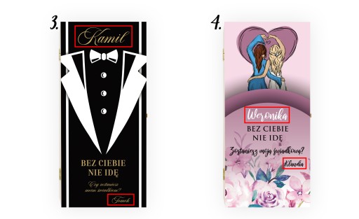 Po dokonaniu zakupu pamiętaj o przesłaniu informacji z tekstem personalizacji.* Czerwoną ramką zaznaczono miejsce podlegające zmianom.