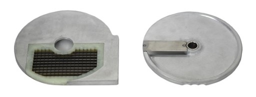 Tarcze przeznaczone do pracy w szatkownicy HLC-300, tnące warzywa w kształt kostki 10x10 [mm].