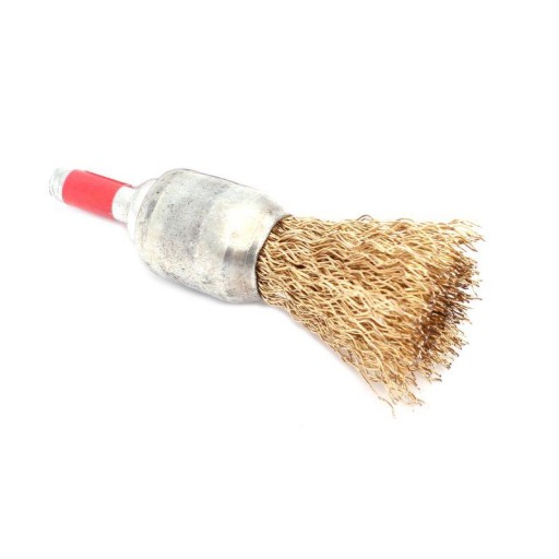 Szczotka techniczna pędzelkowa z trzpieniem (o średnicy 6.25 mm) wykonana z karbowanego drutu stalowego-mosiądzowanego.