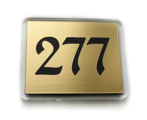 - Numerki wykonujemy techniką grawerowania laserowego na wysokiej jakości laminacie grawerskim o grubości 1,6 mm, przyklejonym do pleksi grubości 3mm.
