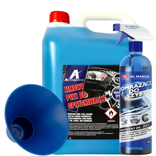 ❄️☑️ Zimowy Zestaw do Samochodu - Wydajny Płyn do Spryskiwaczy ActiveDRIVE 5L + Odmrażacz do szyb Dr. MARCUS + Skrobaczka Stożkowa ☑️❄️