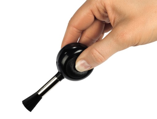 Dmuchawa powietrza dokładnie usuwa kurz, okruchy i inne małe cząsteczki bez dotykania powierzchni. Specjalny system zaworów zapewnia optymalny wydmuch, dlatego do czyszczenia wystarczy samo powietrze. Pompka świetnie sprawdza się do utrzymywania w czystości soczewek i okularów. Zintegrowana kompaktowa szczoteczka z delikatnymi włoskami dokładnie usuwa silne zabrudzenia i grube cząstki.