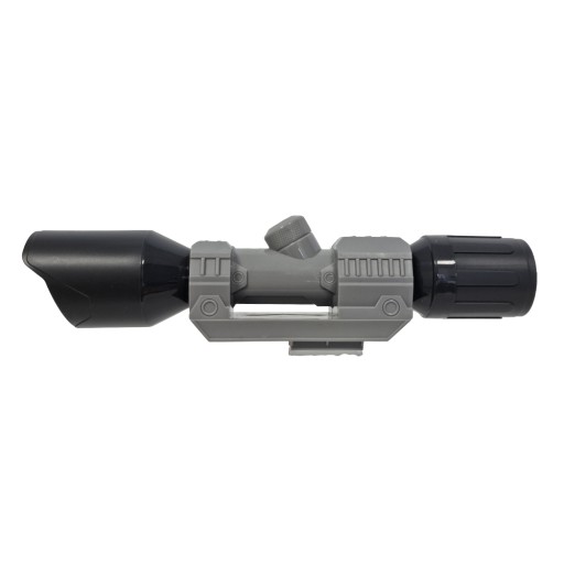 Celownik snajperski - z wyglądu przypomina lunetę, a dzięki uniwersalnemu mocowaniu będziemy mogli zamontować go do każdej wyrzutni Nerf z górną szyną taktyczną. W celowniku znajdują się dwie krzyżowe podziałki. Celownik ma długość ok. 23 cm