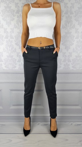 Eleganckie klasyczne spodnie znanej firmy Freesia - cygaretki 7/8, posiadają średni - stan. Świetne połączeniu ze szpilkami, dzięki swojej uniwersalności, pasują niemal do każdej stylizacji. Elastyczny materiał podkreśla kobiecą sylwetkę. Spodnie są dopasowane, rozciągają się. Podkreśl swoje kobiece kształty! Spraw, by Twój codzienny Look był niepowtarzalny.