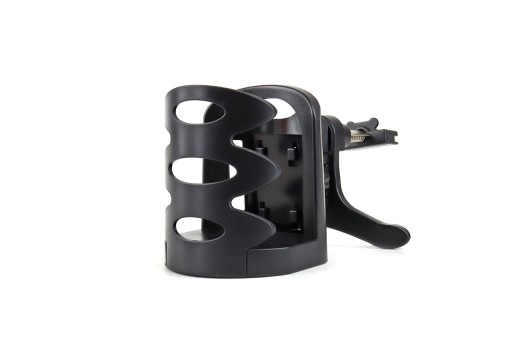 Uniwersalny, samochodowy uchwyt do napojów montowany w kratce nawiewu.