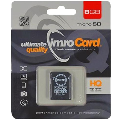 Producent i model: Imro 8GB 15478 karta pamięci+adapter microSDHC CL10 + Adapter MemoryStick PRO DUO -> microSD czarny