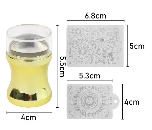Do każdego stempelka dołączone są 2 płytki ze wzorami. Każda płytka może pełnić również funkcję zdrapki do lakieru.
