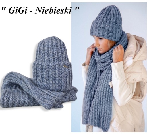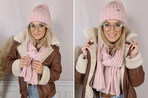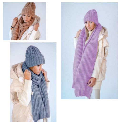 gruby zimowy duży szal szalik ciepły zestaw chusta
