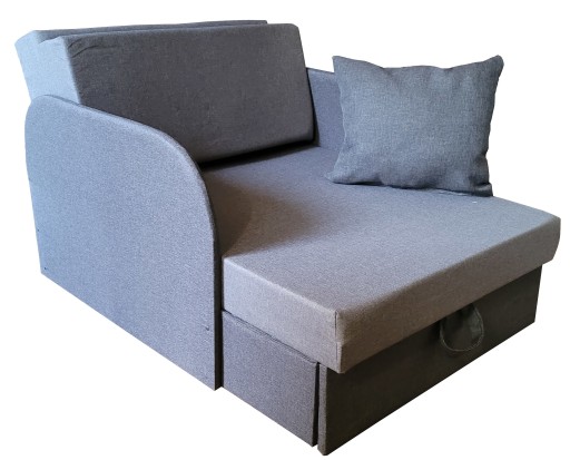 Tapczanik posiada pojemnik na pościel. Górna część tapczaniku jest wysuwana.